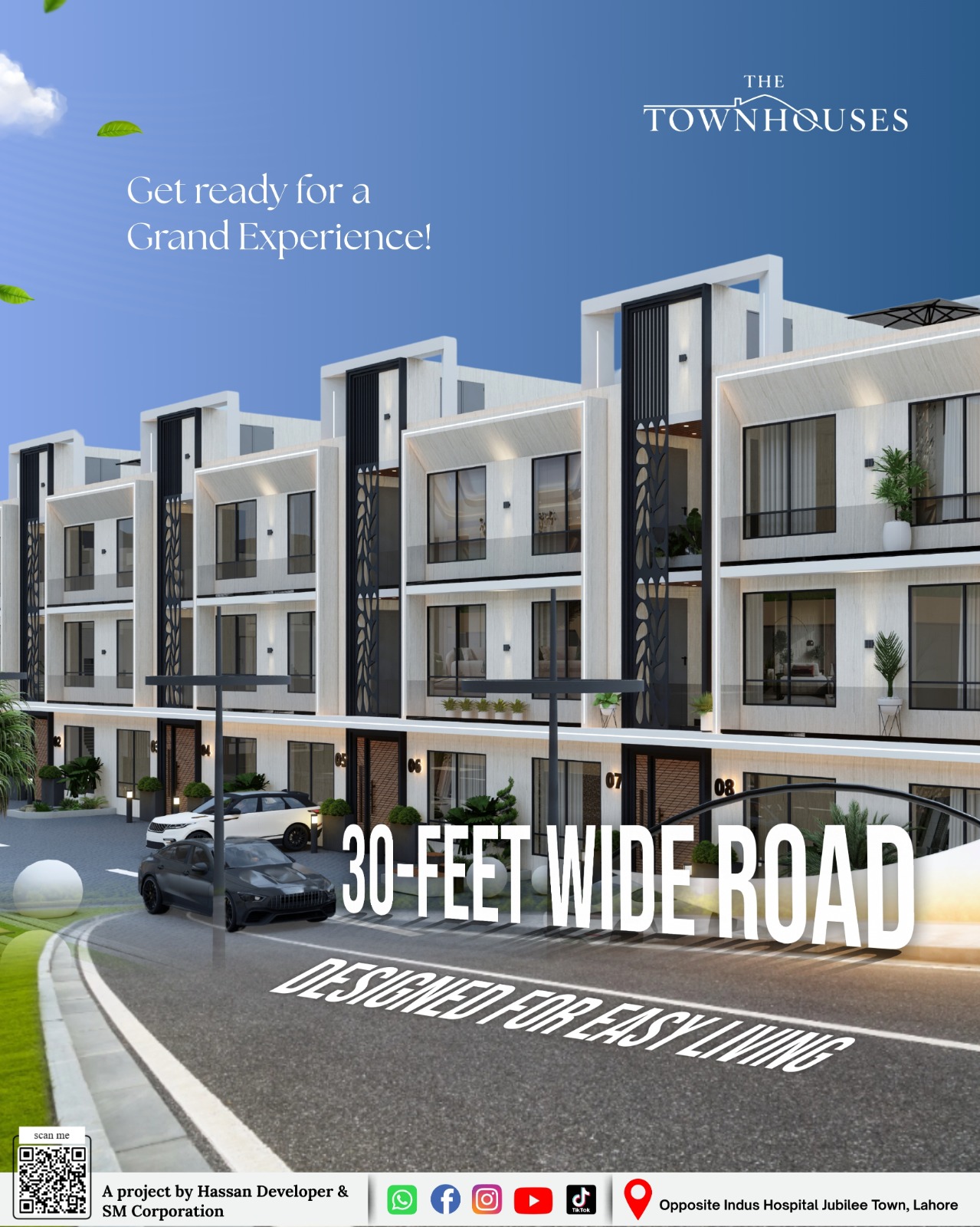 Project The Townhouses by Hassan Developers offer a blend of modern luxury and serene living, designed for those who seek comfort and elegance. Nestled in a vibrant community, these spacious townhouses provide an ideal setting for families to thrive, featuring top-notch amenities and beautiful finishes that cater to a sophisticated lifestyle.